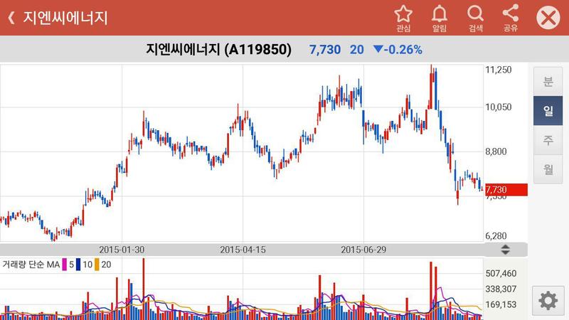 결론적으로 지엔씨에너지는 본사업인 비상발전기 부문을 잘 영위하고 있으며, 신성장동력인 신재생 에너지 부문도 급격한 성장을 이루지는 못하지만 차근 차근 하나씩 확보해 나간다는 점에서 긍정적이라는 생각을 했습니다. 다만 신재생에너지부문에서의 매출이 주로 전력판매와 REC 판매로 이루어지는데, REC의 가격이 급격하게 하락하고 있다는 점은 지엔씨에너지의 수익성을 악화시킬 수 있다는 점과 비상발전기 시장의 경우 세계 경제 현황과 밀접하게 연관을 지니고 있다는 점에서 리스크가 존재한다고 볼 수 있습니다.