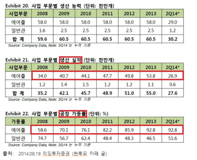 -2014년 사업보고서를 통해 작년 에어졸관 생산 가동률은 91%, 일반관 가동률은 51%를 확인