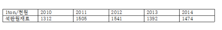 그런데 원재료의 60%를 차지하는 석판의 최근 5년간 가격은 다음과 같다.