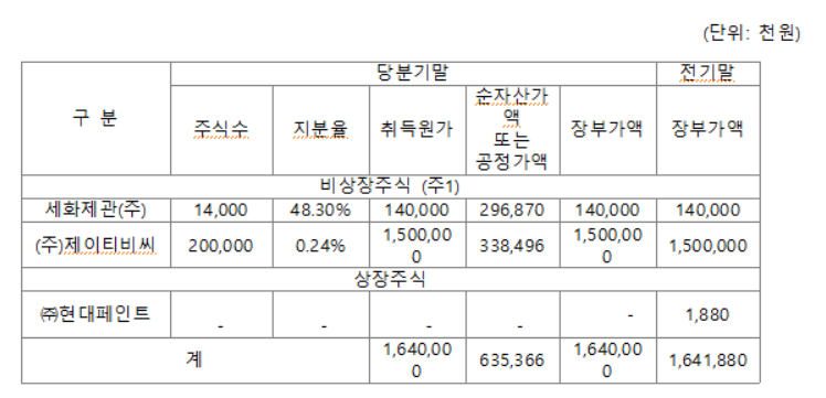 하지만 취득원가로 계산해도 당사가 보유한 현금성 자산은 어립잡아 350억원(현금 160+장단기 금융자산 190억원)이 넘어 시총대비 35%의 현금을 갖고 있다고 볼 수 있다. pbr 또한 0.74배로 자산가치 대비 어느 정도의 안전마진이 있다고 판단할 수 있다.