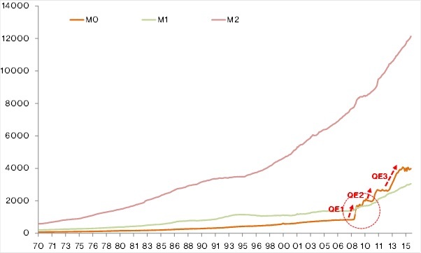 <그림 1> QE 1, 2, 3로 본원통화(M0)가 이미 M1을 넘어선 상황>