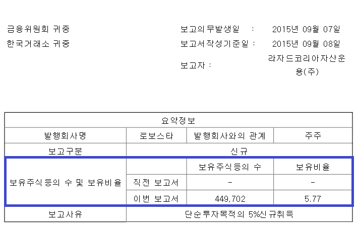 5. 최근 라자드 코리아가 공시를 했던데 그 이유는?