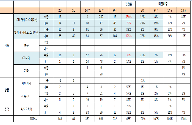 - 7라인에 동사의 제품이 선정되어 15년 말까지 2대 납품을 목표로 제작 중임. 10억 원 정도 매출액 예상.