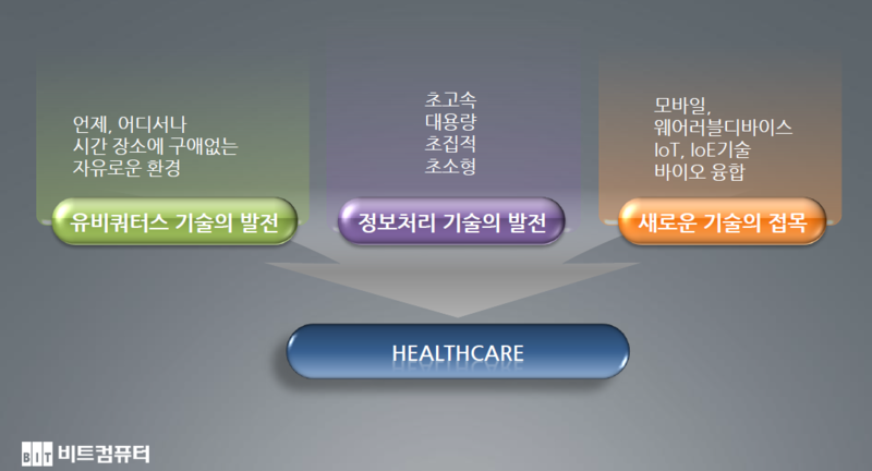 과거에도 U-HEALTHCARE에 대한 관심이 지속적으로 존재했으나 실현되지 못했던 이유는 바로 기술의 부재에 있었다. 그러나 최근 IT 기술이 급격하게 발달함에 따라 웨어러블 디바이스가 생산되기 시작하였고 사물인터넷이 도래함에 따라 언제, 어디서나 자신의 건강 상태를 체크할 수 있게 하는 기술력이 확보되었다. 이 역시 U-HEATLTHCARE의 성장에 근간이 된다.