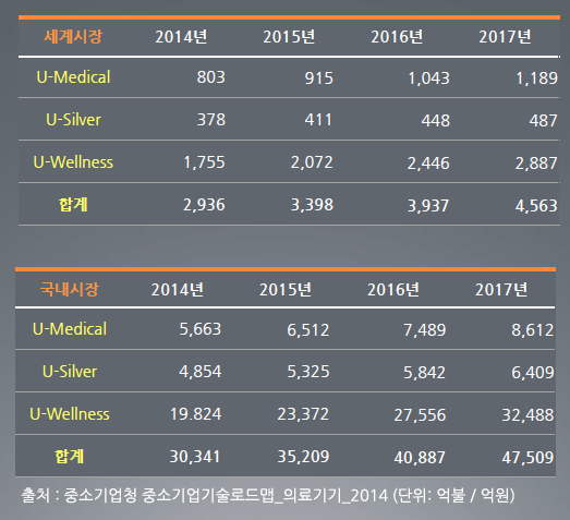 중소 기업청의 조사 자료에 따르면 세계 시장, 국내 시장 할 것없이 2014년 이후로 매년 10% ~ 20%의 성장을 이룰 것으로 예측하고 있다. 국내 시장의 경우 2014년에는 U 헬스케어 부문의 규모가 3조에서 2017년 4조 7500억으로 무려 50% 가까이 성장을 하게 된다. 이는 원격진료 구축에서 독보적 지위를 차지한 비트컴퓨터에게 큰 기회를 주지 않을까라는 생각이 들게 한다.