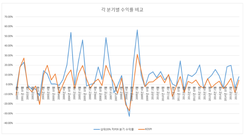 2. 매분기 저per그룹을 측정한건가요? 아니면 2001년당시의 저per을 구하여 2015년까지 보유한경우인가요?