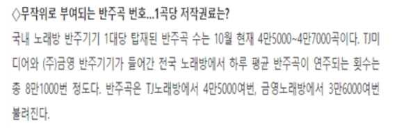 (하지만 위의 뉴스에서 알 수 있듯이 하루 평균 노래가 연주되는 횟수는 TJ노래방 기기가 금영보다 30%이상 많은 것으로 보아 실제 이용횟수가 많은 곳에서는 TJ 제품이 주로 쓰이고 있음을 알 수 있다.)