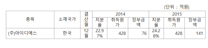 (대주주인 김승영 회장의 다른 보유 기업 아이디에스는 2015년 7월부터 2016년 3월까지 상장폐지 사유 발생으로 거래정지 중)