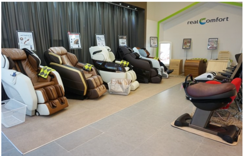 리얼컴포트는 위의 사진에서 볼 수 있듯이 대형 안마의자, 소형 안마기, 듀오백 의자, 책상, 건강 베개, 라텍스 침대, 승마 운동기기, 반식욕 기기 등 다양한 건강 및 헬스 관련 기기를 체험을 통해서 판매하는 유통 매장이다.