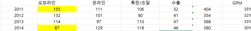 (왜냐하면 온라인이나 특판에 비해서 오프라인 매출의 마진율이 2~3배 정도가 높기 때문에 오프라인 매출의 감소 -> 영업이익의 감소로 바로 이어지기 때문이다.)