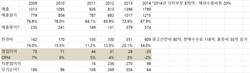 시디즈의 경우 기능성 의자 부문에서 매출액 870억으로 2위인 디비케이의 380억을 2배 이상으로 따돌리고 있다. 비록 매출액은 꾸준히 증가하지만 광고, 물류, 판매 수수료 등의 판관비의 과다한 증가로 인해 이익이 안나고 있지만.....