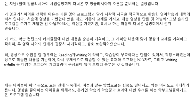 실제로 비상의 잉글리시아이의 컨텐츠에 대해서 학원원장님들의 만족감이 표현되고 있으며 네이버트렌드를 통해서도 비상 잉글리시아이에 대한 관심도가 서서히 증가하고 있음을 알 수 있다.