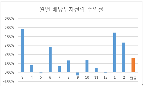필자는 이에 그치지 않고 한가지 의문을 더 가져 보았습니다. 12월만 되면 나오는 증권사의 배당주 리포트를 어떻게 볼 것인가 고민하던 중, 배당주 포트폴리오의 월별 수익률을 분석해보기로 한 것입니다.