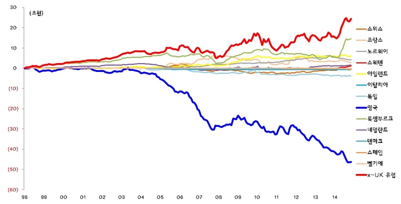 <그림2> 영국계 자금의 흐름 : 2004년 이후 꾸준한 매도세