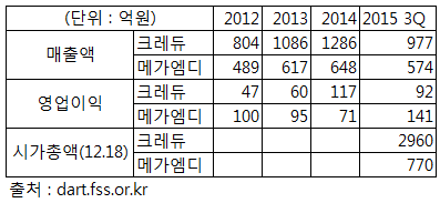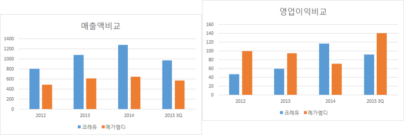 매우 rough한 비교일지 모르나, 성인교육시장의 크레듀와 메가엠디를 함께 비교해보았습니다.