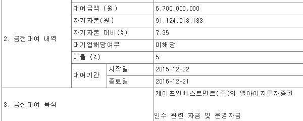 15.12.22 자회사 케이프인베스트에 67억 대여