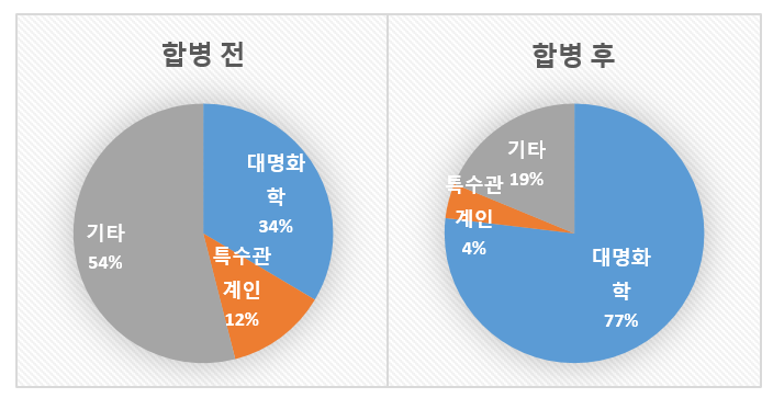 < 합병 전후 대명화학의 이노칩 지분율 >