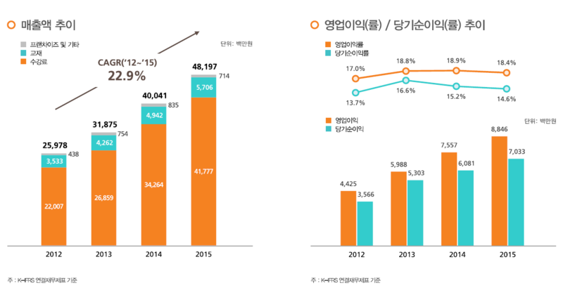 사실 감이 잘 안오실 겁니다. 정말 효과가 있나? 투자자 입장에서 파악하긴 힘들죠. 하지만 정말 뛰어난 교육효과가 있는지 떠나서 독창적인 컨텐츠, 세계 수학 경시대회 입상경력, 우수 영재 학교 진학률 홍보 등을 통해 분명 학생들을 모으는데 성공하고 있습니다. 앞서 보여드린 매년 성장하는 매출액이 그 증거입니다.