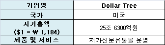 <자체제작, 출처 : Dollar Tree 사업보고서, 환율 $1 = 1,184원>