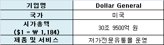 <자체제작, 출처 : Dollar General 사업보고서, 환율 $1 = 1,184원>