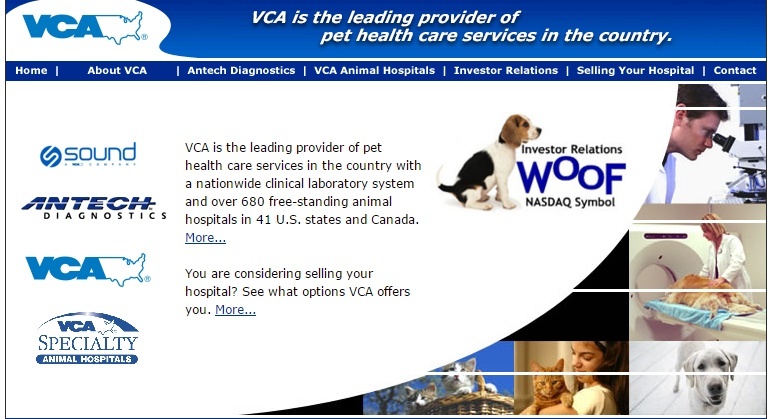 오늘 소개해 드릴 기업은 바로 'VCA Inc' 입니다. VCA Inc는 미국등 북미지역에서 동물병원 체인점 및 동물 진단 실험실을 운영하는 회사입니다.