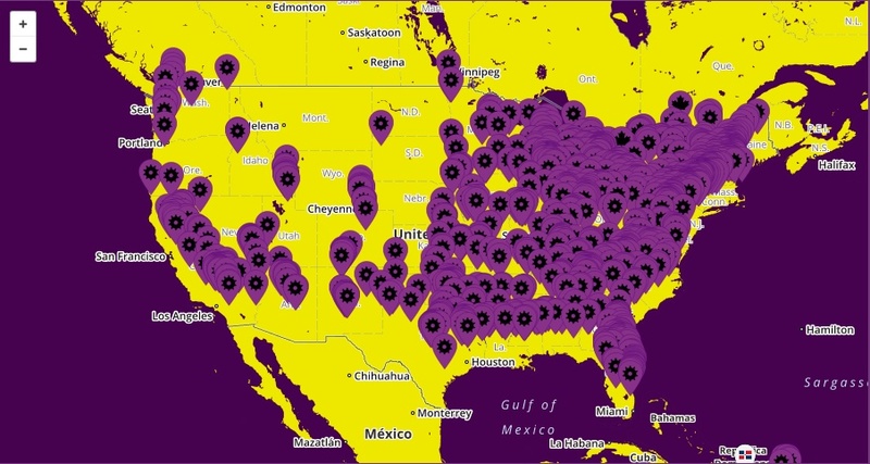 <미국 지역 내 Planet Fitness 매장 현황(1Q16기준 1,171곳), 출처 : Planet Fitness>
