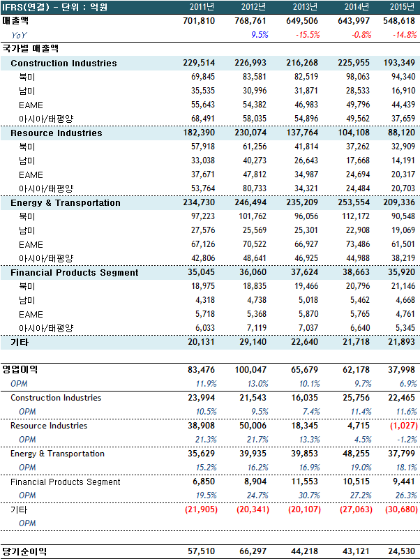 <자체제작, 출처 : Caterpillar 사업보고서>