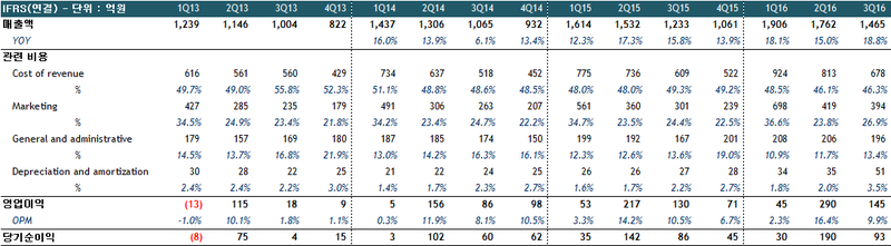 - 3Q16 매출액 YOY+18.8% -> 3분기 역대 최대 매출, 이익 기록