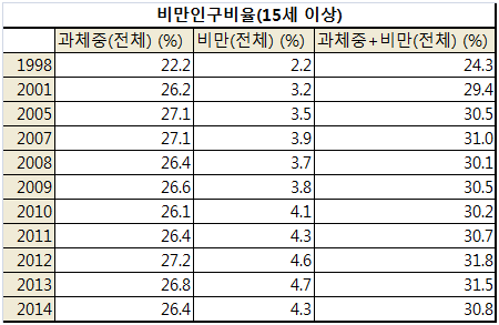 <국내 비만인구비율(15세 이상), 자체제작, 출처 : 통계청>
