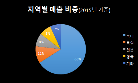 - 지역별 매출 비중(15년) - 북미(66%), 독일(11%), 일본(8%), 영국(8%)