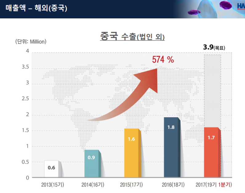 (실제 2017년 1분기 중국향 매출이 작년 전체 중국쪽 매출에 맞먹는 매출에 해당할정도로 급격히 성장하고 있다.)