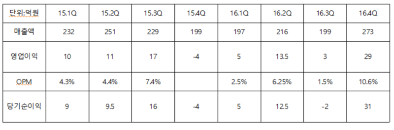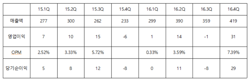 이처럼 2006년 이후 당사의 분기 최대 실적을 낸 지난 4분기에서도 중국법인은 여전히 적자를 기록한 상황이다. 특히 15년도에 비해 중국법인의 매출이 연간으로 4배이상 증가했음에도 여전히 적자를 내고 있는 점은 매우 의문이 든다.