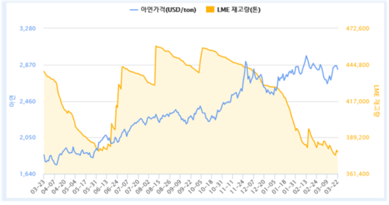 - 올해에도 여전히 높은 가격을 유지중인 아연 가격