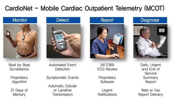BioTelemetry Inc는 심장 박동 및 각 종 심혈관에 대한 데이터를 모니터링 할 수 있는 헬스케어 기기와 이를 의사 및 보호자에게 진단 및 확인 할 수 있는 소프트웨어를 개발하고 있습니다. 위의 그림과 같이 BioTelemetry Inc의 개발 제품은 이용되고 있습니다.