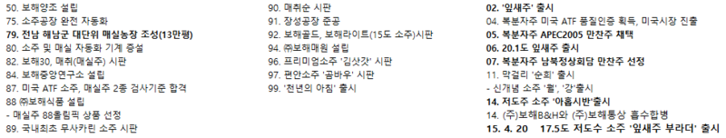한줄 요약을 하자면 그냥 소주 회사. 연혁은 다음과 같다.