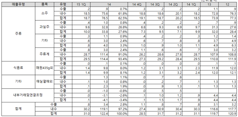 - 저도수 소주 출시로 인한 매출 성장