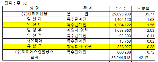 이것은 최근 변동공시가 나오기 전, 주주 현황이다. 5월 20일부터 28일까지 유철근 대표이사가 전량매도, 임진이라는 분이 23만주정도를 장내매도했다. 저때 하한가 갔다가 거의 보합으로 끝날 정도로 변동성이 컸다. 여담으로 필자는 차트를 전혀 보지 않고 가격만 보기 때문에, 주가 움직임에 관심이 없다.