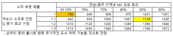 2. 기존 참이슬 fresh 등 광주/전남 저도수 시장을 뺏어올 수 있다.