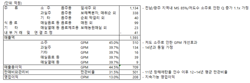 올해는 얼마 매출 얼마 영업이익을 추정하는 것은 의미가 없다고 생각한다. 결국 음식료 그리고 음식료 중에서 소주 사업이기 때문에 'MS'에 촛점을 맞춰야 한다.