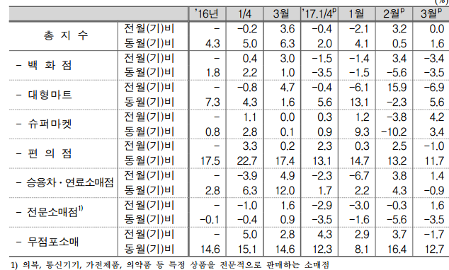 - 편의점과 온라인을 통한 소매판매 증가 추세