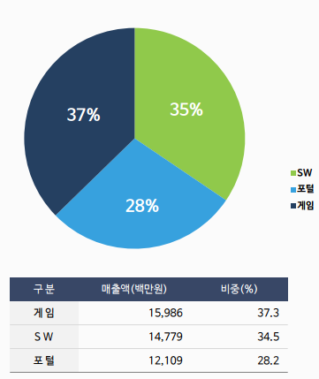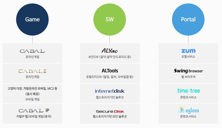 게임사업, 소프트웨어사업, 포탈사업을 영위 중이다. 각 사업별로 설명하자면,