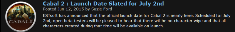 현재 카발2 북미는 CBT는 완료. 7월 2일 OBT 진행 예정.