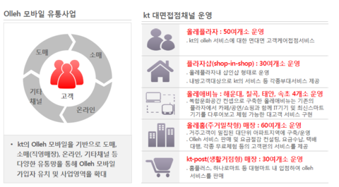 KT 모든 상품을 취급하고 대리점 사업도 한다. 알뜰폰 사업은 KT 자회사로 매각했다(6월1일). 적자를 보던 자회사여서 알뜰폰 매각 공시가 나오면서 주가는 급등했다.
