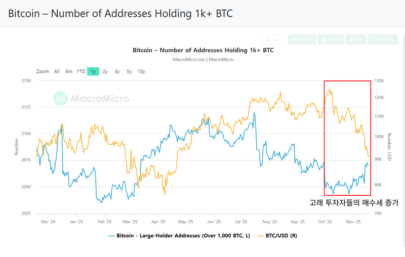 <비트코인 1천개 이상 홀더들의 순매수 현황>