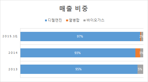 신성장동력인 바이오가스 발전 부문의 경우 현재까지 딱히 경쟁사가 존재하지 않으며 아직 시장이 개화된지 얼마되지 않았다는 점, 정부가 신재생에너지 보급 비율을 지속적으로 증가시키고 있다는 점을 고려시 지속적인 성장이 예상된다. 실제 마진율 역시 기존 비상발전기 사업에 비해 훨씬 높은 30~ 40% 수준에 이르는 것으로 추정된다.