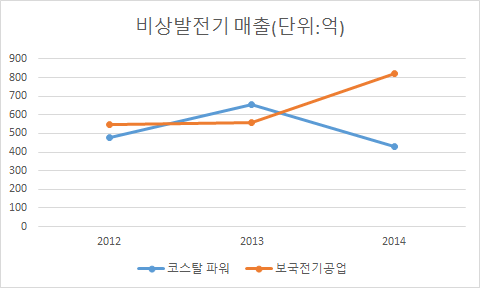 비상 발전기 부문 경쟁자로는 코스탈 파워, 보국전기공업 등이 있다.