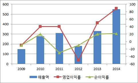 2009년부터 매출액이 꾸준히 늘어나고 있으며 2012~2014년 사이에 매출액 상승폭이 엄청나게 크고 있다. 북미 시장을 공략한 애니메이션의 흥행으로 인한 성공 덕분이다.