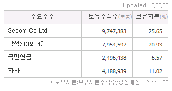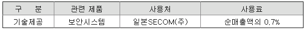 'Secom Co Ltd' 주주는 일본 기업이다. 세콤은 일본과 삼성의 합작회사로 일본 기업에 로열티를 내면서 한국 시장에 진출하였다. 삼성계열사인 에스원은 일본 기술을 토대로 보안 시장의 기업으로 자리 잡았다. 일본에 지불하는 로열티는 다음과 같다.